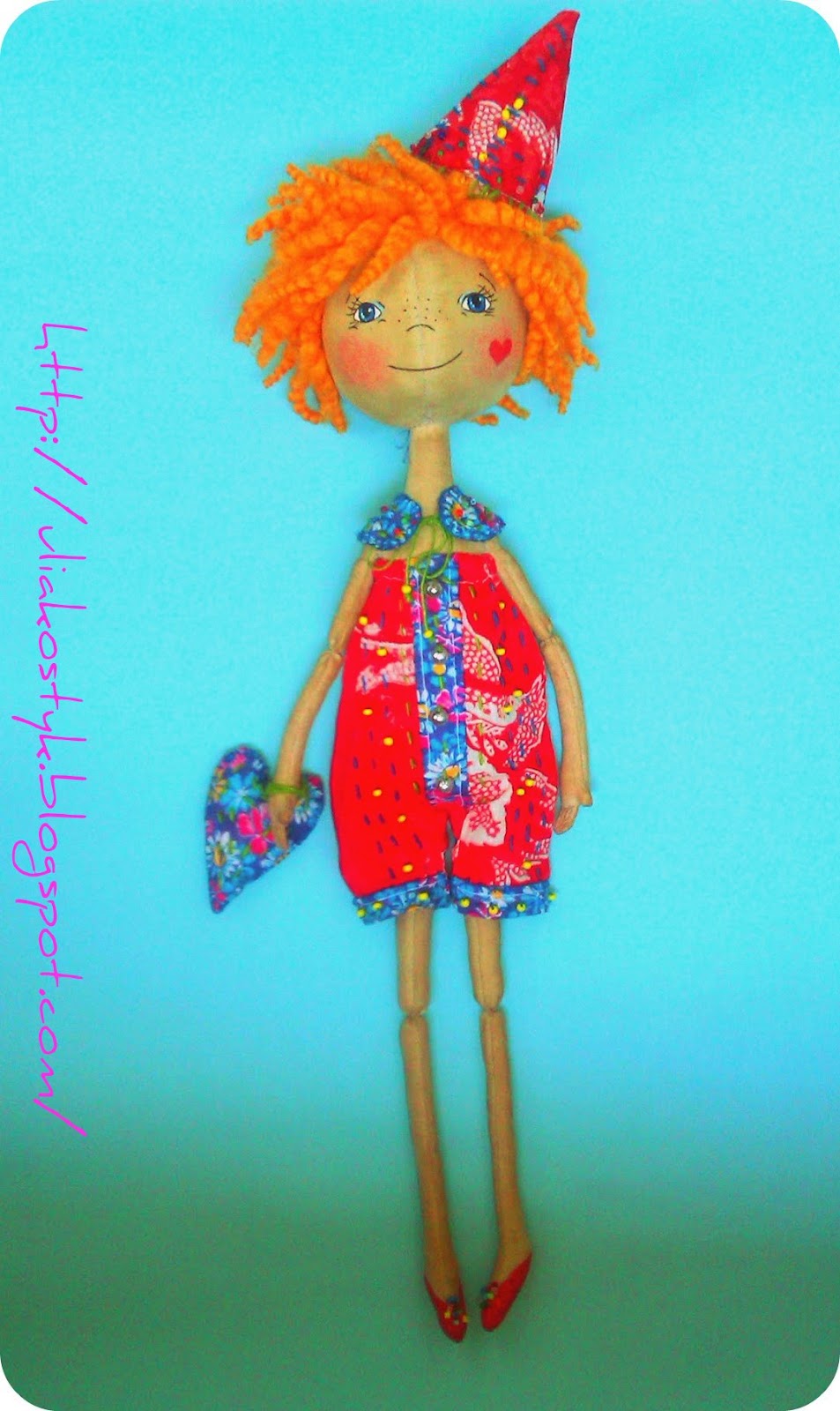 Пока я делала эту куколку она у меня и клубничкой была и девочкой клоуном. Но видя готовую работу, все начинают запевать строки из песенки: "Аааааарлекино, Арлекино")))
